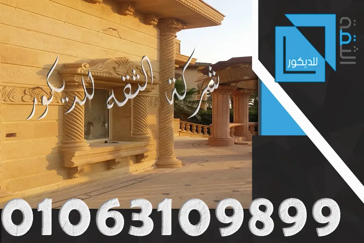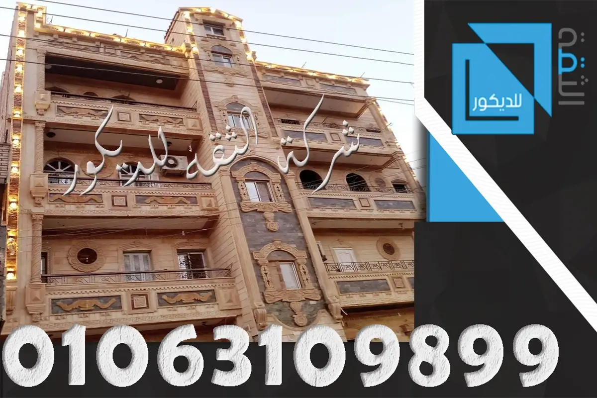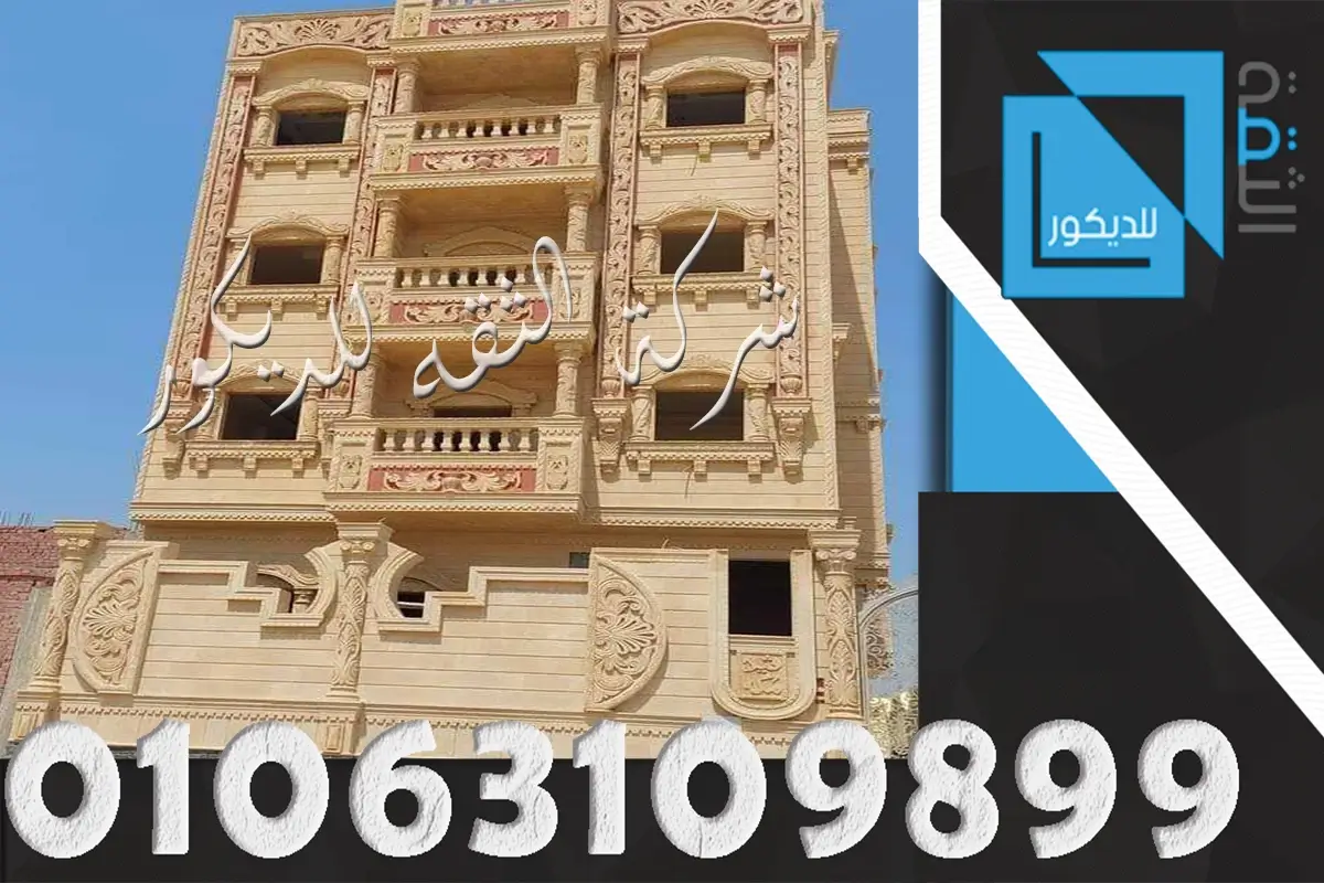 ولا ننسى من اسفل الواجهه تركيب حجر بازلت اسود يعطى مظهر خلاب وابضا تركيب الكابولى والتيجان وكثير من الديكورات